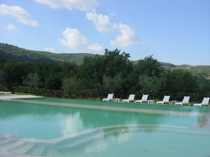 Hier können Sie aus einer kleinen Wellnessanlage (Architekt Eckert) die sanften Chianti Weinhügel der Toskana genießen.